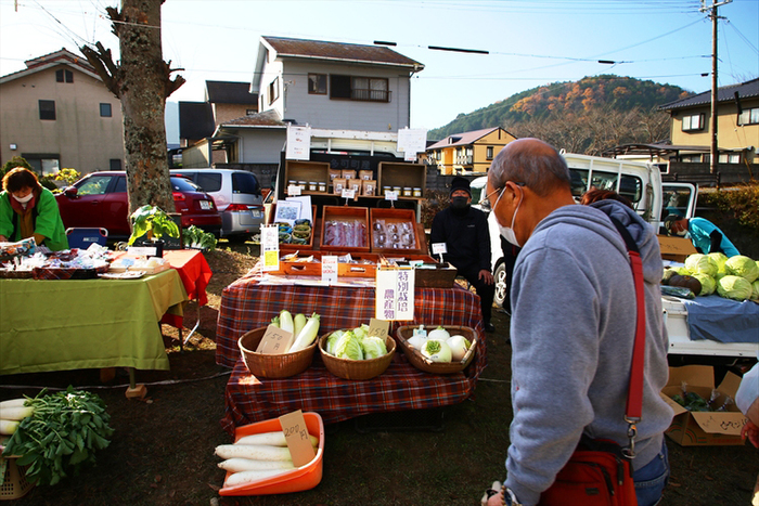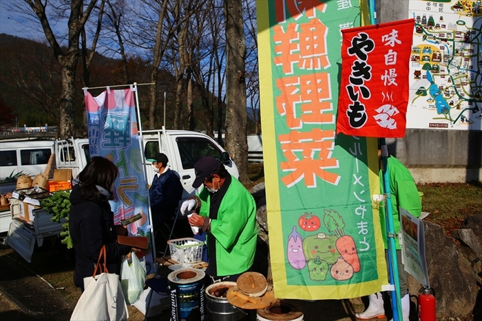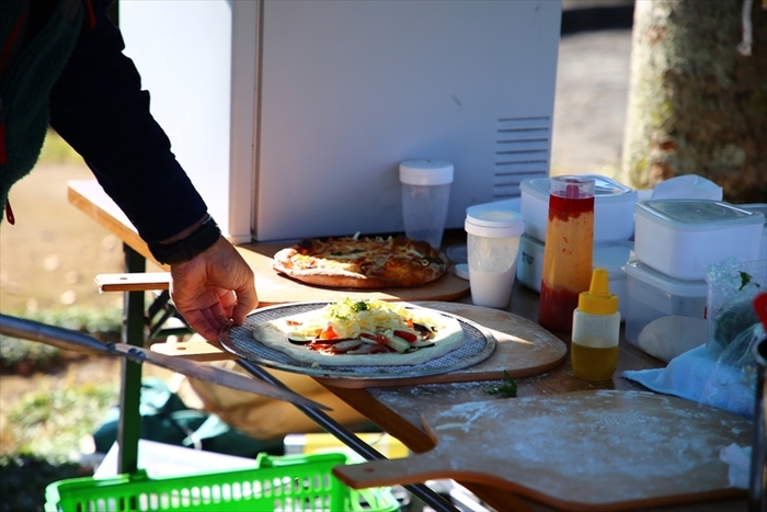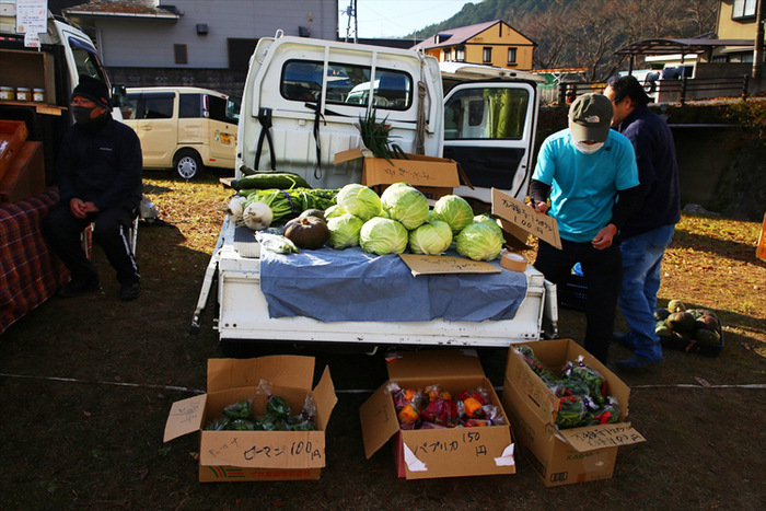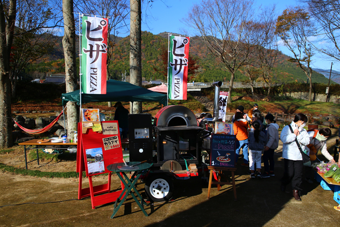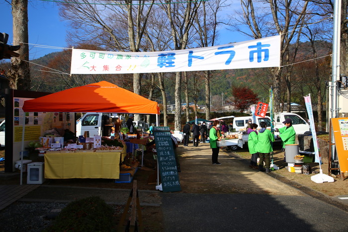 朝どれ野菜が並ぶ「軽トラ市」を中心に、焼餅やピザ、伝統野菜、多可町の竹やススキを使った工芸品、包丁やノミなどの金物など、際立つ品がズラリ。