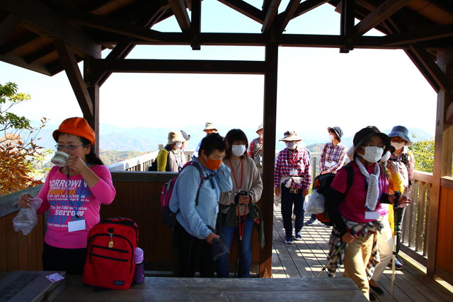 やがて展望台に到着 ―― ガイドの皆さんが用意してくださった黒豆茶に憩い、空を拓く絶景を眺めます。