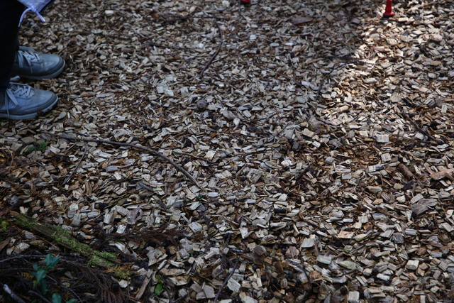ドイツ語で「森」を意味する「ヴァルト」の名の通り、どこか西欧情緒を感じさせる林道は、踏みしめるたびにキシィ……キチィ……っと足裏にやさしい感触 ―― 道幅いっぱいに重なるウッドチップが軋むのです。