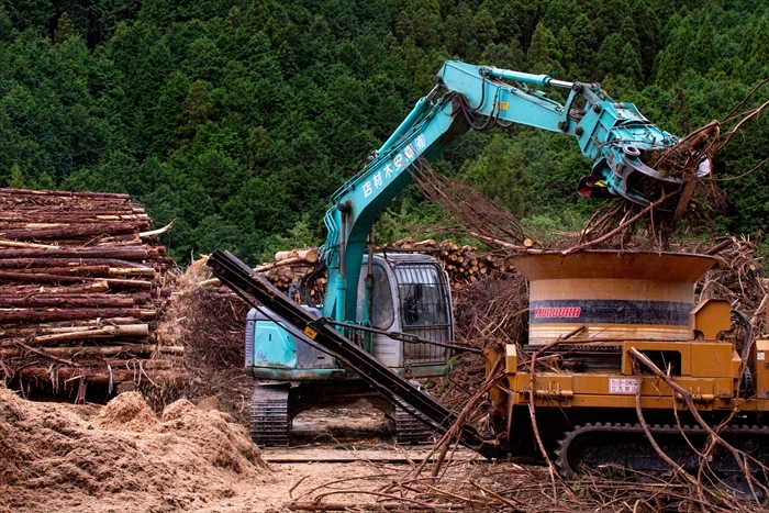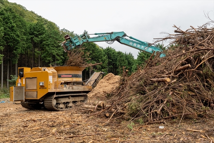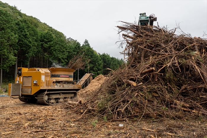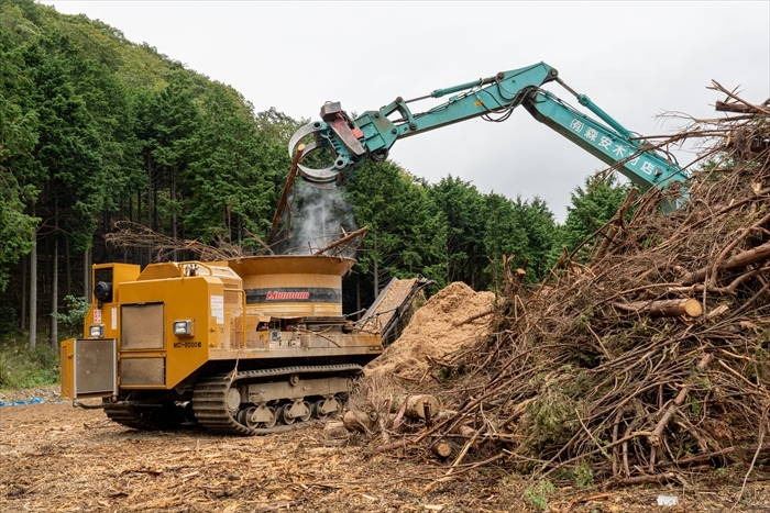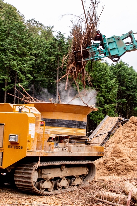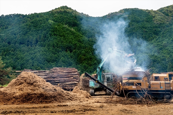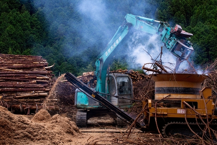 山林の保全や木材の切り出し、間伐材を利用したバイオマスチップの生産などを行っています。