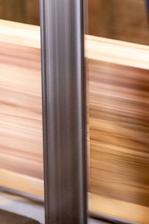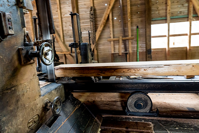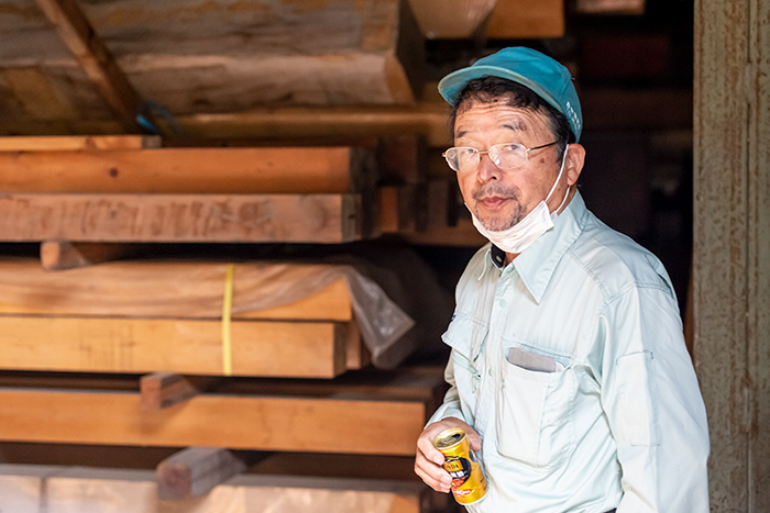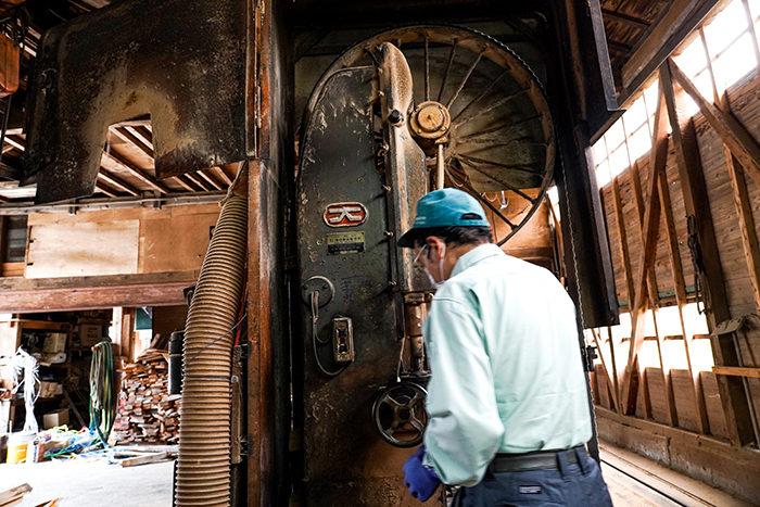 「たくさんの木材を切り出していた頃、そこの戸、工場の扉を外してね。交通整理の人に来てもらって、道路まではみ出す12m以上の丸太を挽くこともありました」
