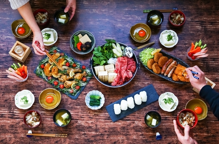 すき焼きにコロッケ、手羽もと・手羽先、野菜の煮しめ、農家のお米のおにぎり……うまかったなあ。