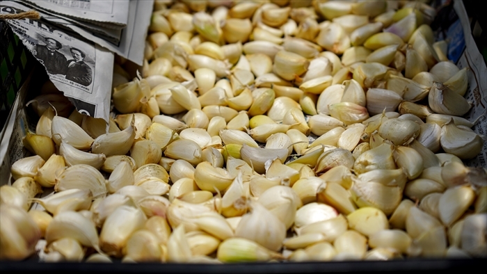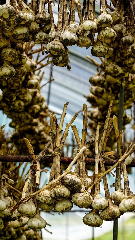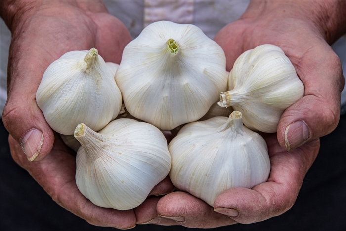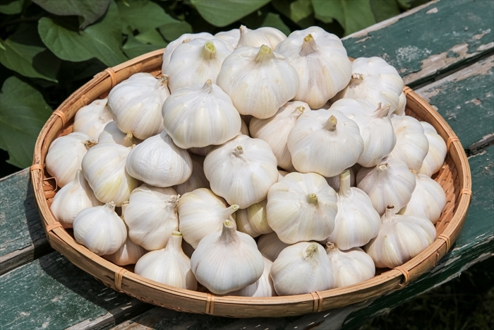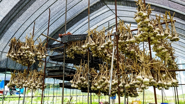 1万個のニンニクが育ち、およそ8割が出荷可能な状態で収穫されたとか。