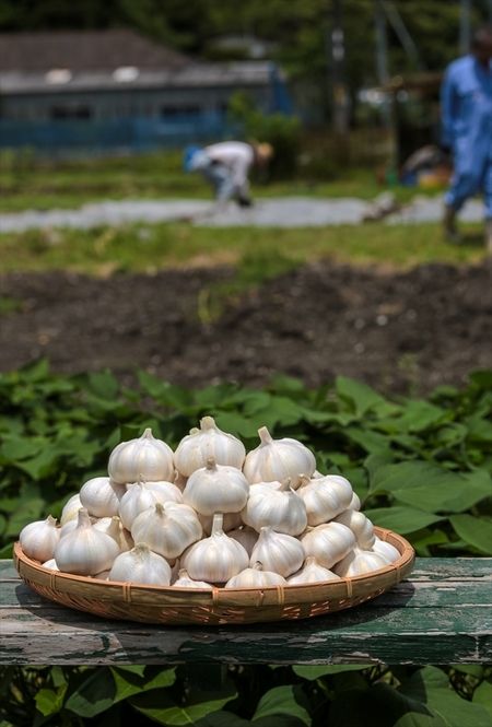 「やまののうえん」というファームを立ち上げたブルーメンやまとのみなさんが、にんにくの出荷の真っ最中ということで、撮影させてもらいました。